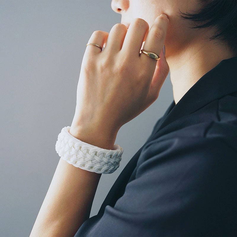 This bracelet is made using the Mizuhiki craft technique of the “NAGAHA knot”.