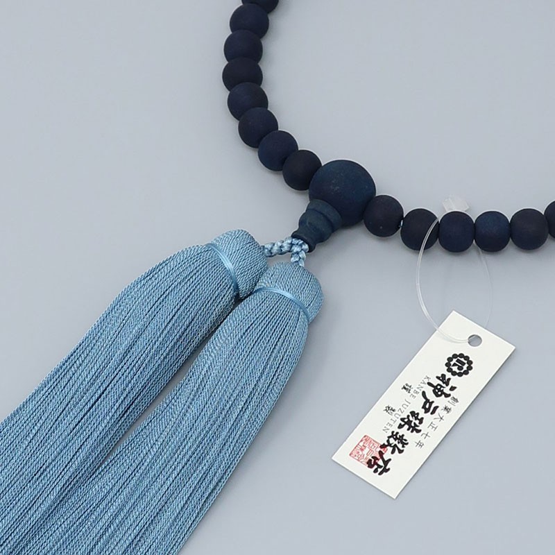 We have focused on creating rosaries using the traditional Japanese colour “indigo”. We use wooden beads and tassels dyed using the traditional method of “true indigo dyeing”, which employs no chemical substances whatsoever. This is an original rosary from Kobe Juzu, featuring an unprecedented commitment to the indigo hue.