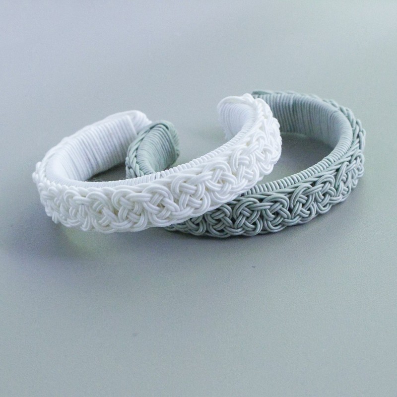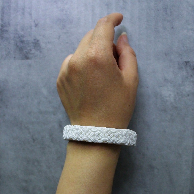 This bracelet features the “Awaji knot” from the art of mizuhiki cord work.