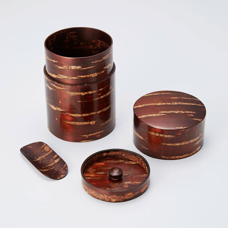 [Materiali] Tea Caddy/Wild cherry bark, Natural wood, Plywood Tea scoop/Wild cherry bark, Natural wood