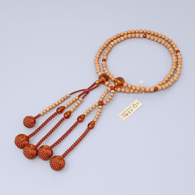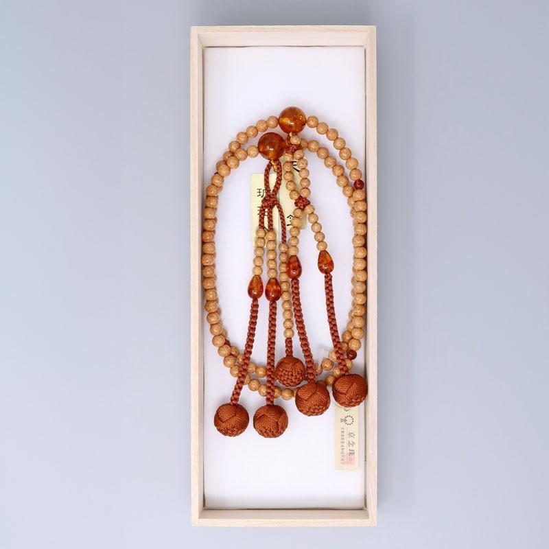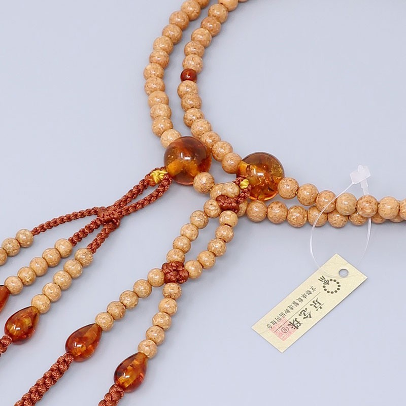 Tra le varie tipologie di semi di Bodhi, abbiamo selezionato il più pregiato: il Tenjiku-Bodaiju. Con l'uso prolungato, la sua superficie acquista una lucentezza naturale, trasformandosi in una calda tonalità ambrata. Grazie alla sua straordinaria leggerezza, è uno degli articoli più amati dai nostri clienti. L'aggiunta di Ambra compressa come accento conferisce al rosario un carattere unico e un tocco di lusso superiore.