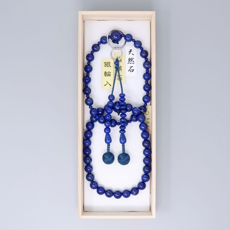 Per questo modello abbiamo utilizzato il Lapislazzuli, una delle pietre che compongono i "Sette Tesori" (Shippo) citati nei testi sacri buddisti. Il suo blu profondo evoca l'immensità del cielo notturno, mentre le inclusioni dorate di pirite brillano come stelle, rendendolo un pezzo unico e di rara bellezza. È la scelta ideale per chi cerca un articolo esclusivo e di grande valore spirituale.